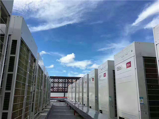 (2)外機是關(guān)鍵部分,從構(gòu)造上來看,它主要是由風(fēng)冷冷凝器和壓縮機組成。當(dāng)系統(tǒng)處于低負(fù)荷時,通過變頻控制器控制壓縮機轉(zhuǎn)速,使系統(tǒng)內(nèi)冷媒的循環(huán)流量得以改變,從而對制冷量進(jìn)行自動控制以符合使用要求。對容量較小的機組,通常只設(shè)一臺變速壓縮機;而對于容量較大的機組,則一般采用一臺變速壓縮機與一臺或多臺定速壓縮機聯(lián)合工作的方式。